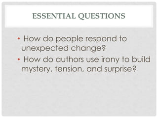 Lamb to the Slaughter by Roald Dahl Literary Skills Understand situational irony and dramatic irony. Show from what is said why you think she did or did not. Why was it a bad time to tell her this.